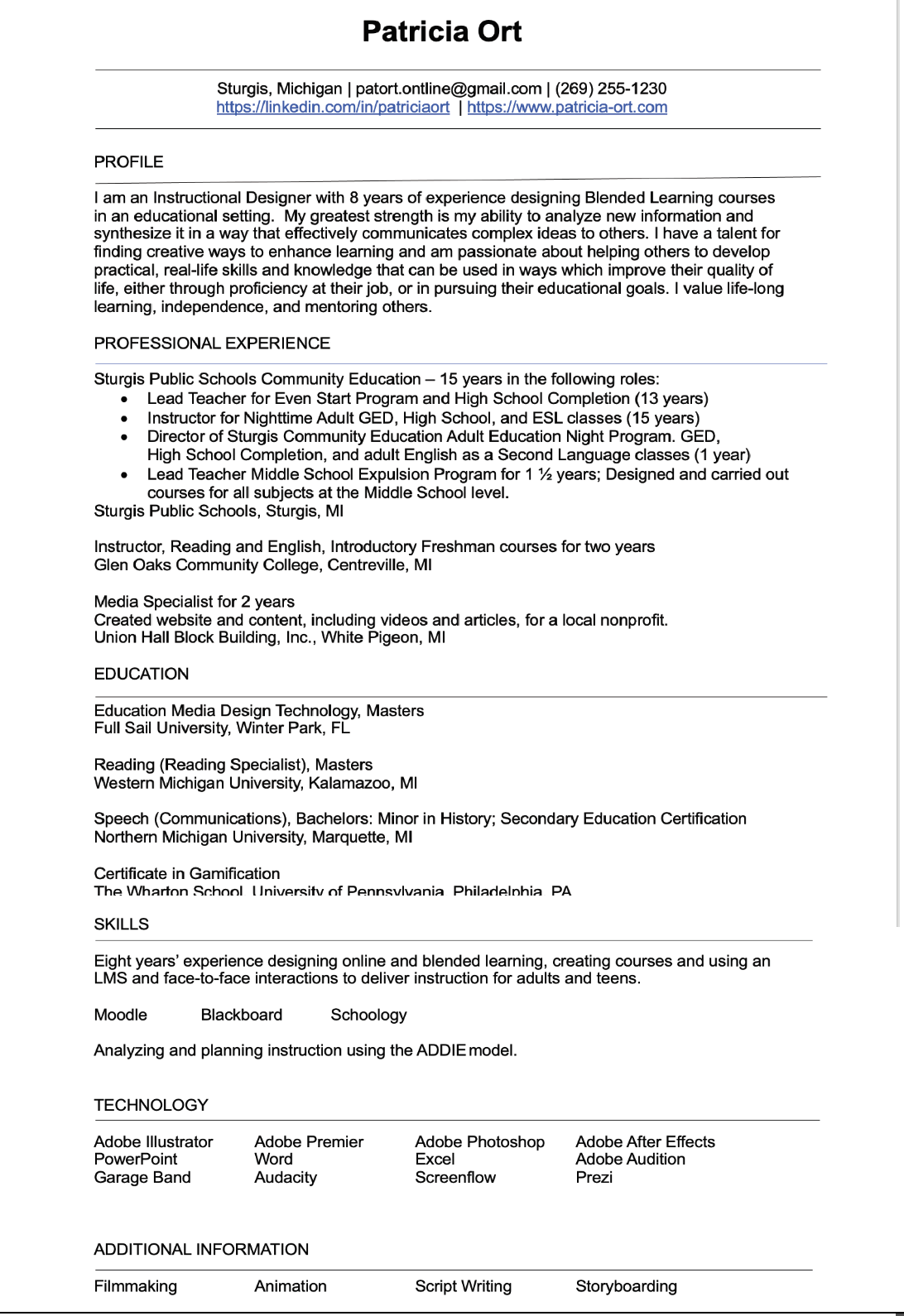 As a veteran teacher and life-long learner, I bring my many years of experience and training to create dynamic learning solutions for K012 and adult learners.